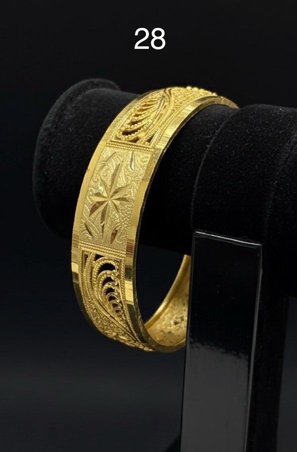 This beautifully crafted Chur-style bangle is plated with premium 24K gold and designed with intricate patterns that highlight traditional artistry. Its bold and elegant look makes it an ideal choice for weddings, festivals, and cultural occasions. Comes with a 6-month colour guarantee for long-lasting shine and durability.