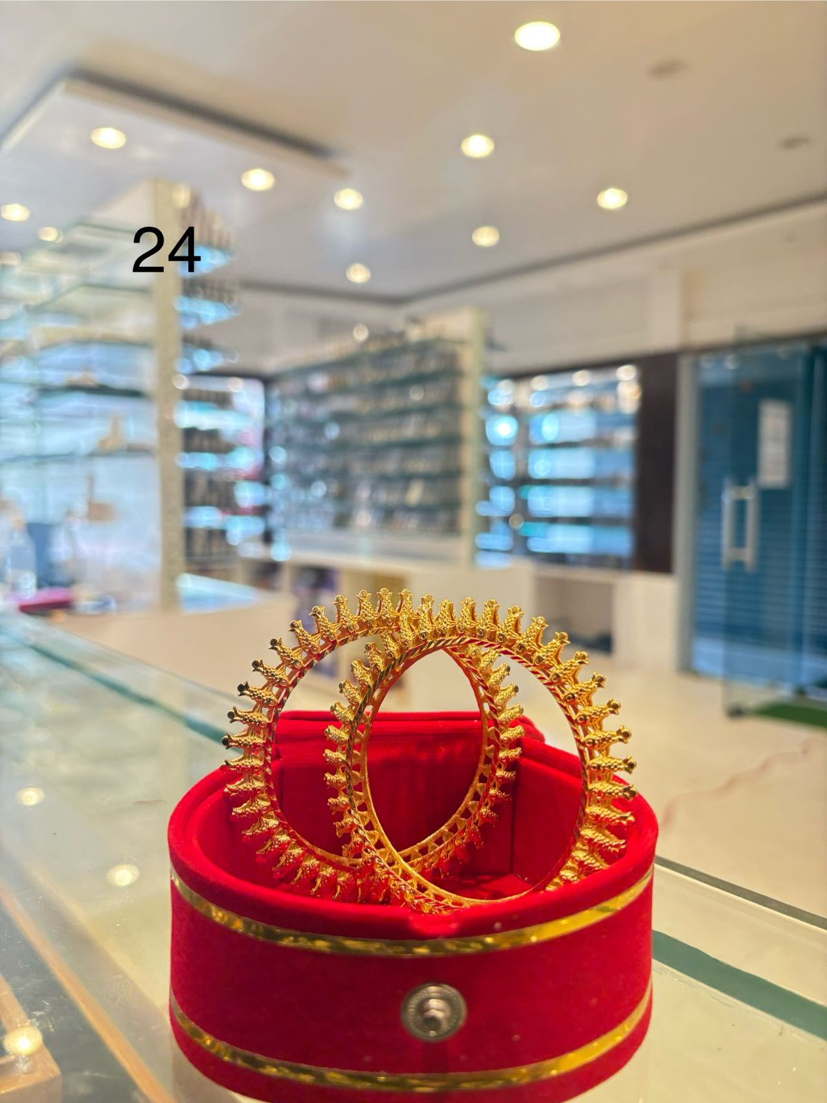 This stunning bangle is lavishly finished with authentic , providing a vibrant, deep yellow hue that perfectly mimics genuine gold. The classic Konkon (or Kankan) design is a timeless symbol of tradition and elegance, making it perfect for weddings, festivals, or adding a touch of daily luxury.