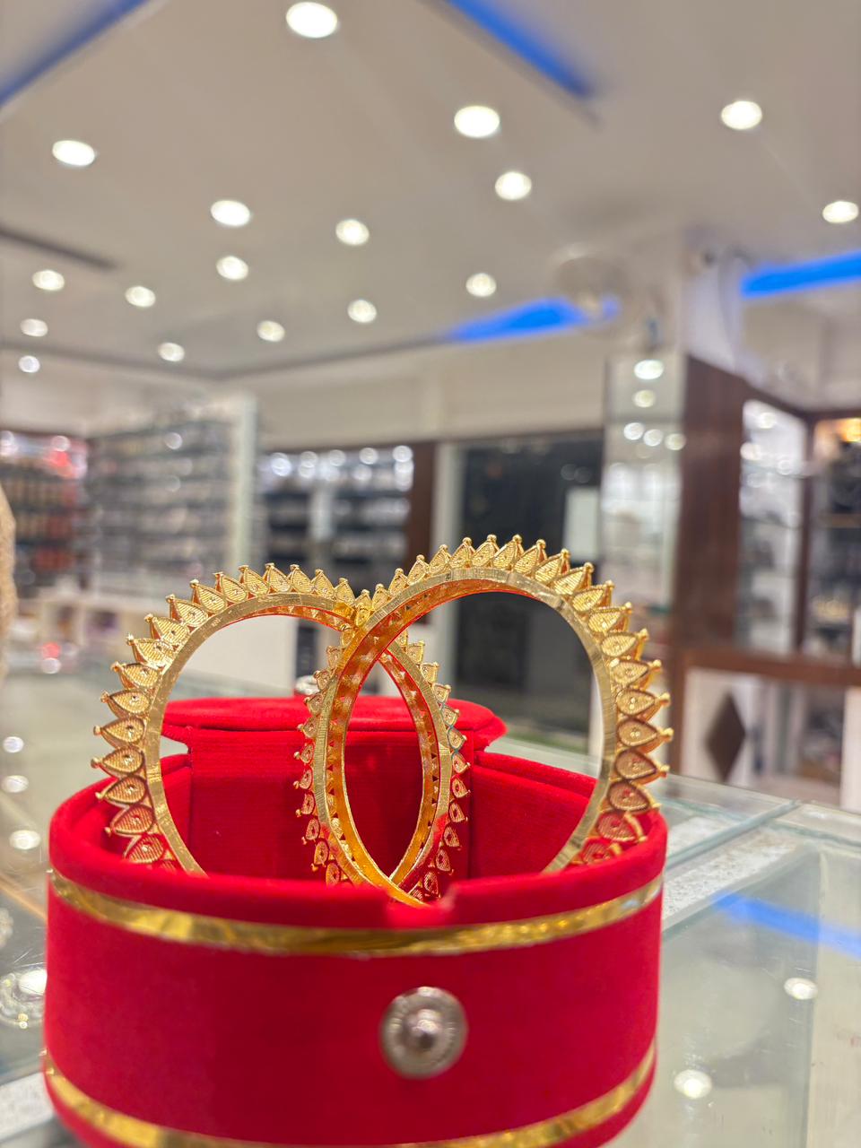 This stunning bangle is lavishly finished with authentic , providing a vibrant, deep yellow hue that perfectly mimics genuine gold. The classic Konkon (or Kankan) design is a timeless symbol of tradition and elegance, making it perfect for weddings, festivals, or adding a touch of daily luxury.