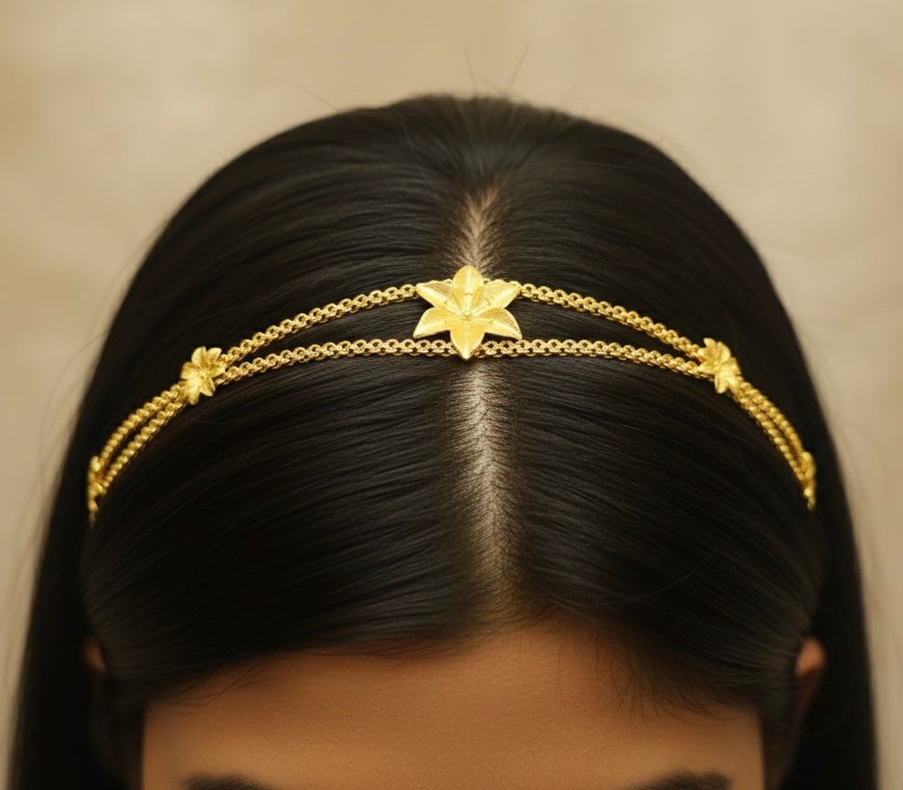 "Enhance your elegance with our stunning Matha Patti, crafted to perfection. Comes with a 6-month colour warranty from Wow Collections, ensuring lasting shine and style."