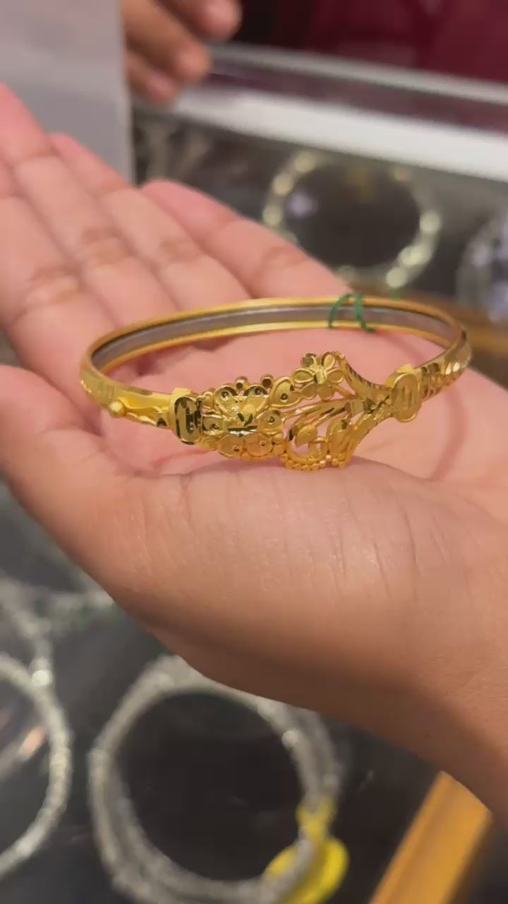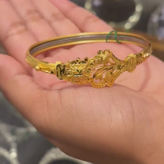 This beautifully crafted NOWA bangle is plated with premium 24K gold, giving it a rich and elegant shine. The intricate floral and traditional design makes it perfect for both daily wear and special occasions. With a 6-month colour guarantee, it ensures long-lasting lustre and beauty.