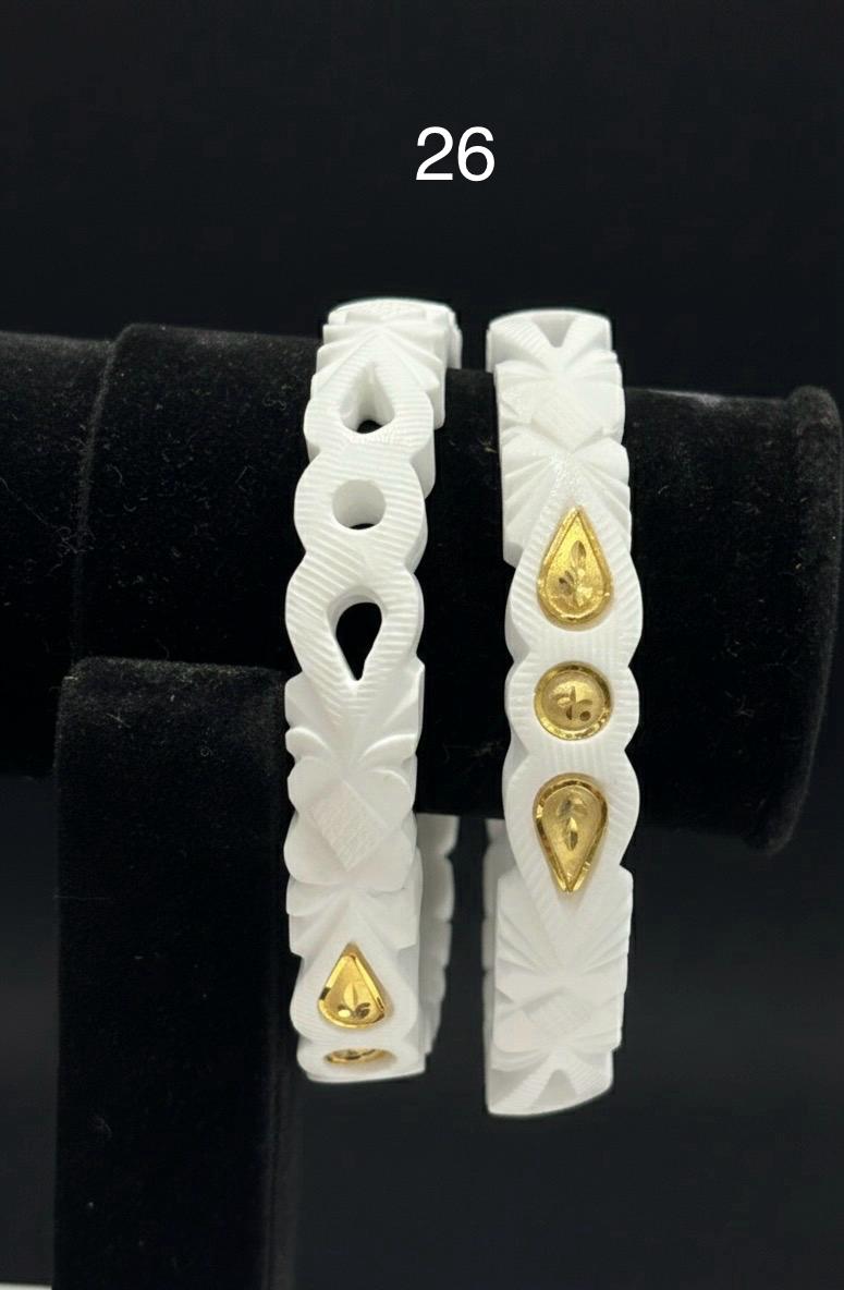 A perfect blend of tradition and style, this Elegant Design Sakha features a unique wavy gold pattern over a pure white base. The fine detailing and 24K gold plating give it a premium and luxurious appeal, making it ideal for both everyday ethnic wear and festive occasions.