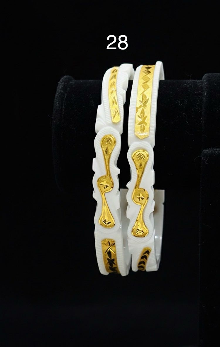 Grace your wrists with this charming Tip Design Sakha, crafted with star-shaped gold accents and a clean, modern finish. The striking 24K gold plating paired with the crisp white base creates a unique contrast that blends tradition with a touch of modern style.