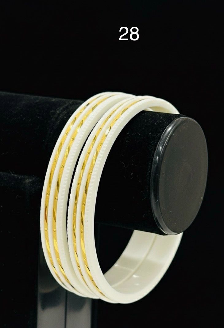 Grace your wrists with this charming Tip Design Sakha, crafted with star-shaped gold accents and a clean, modern finish. The striking 24K gold plating paired with the crisp white base creates a unique contrast that blends tradition with a touch of modern style.