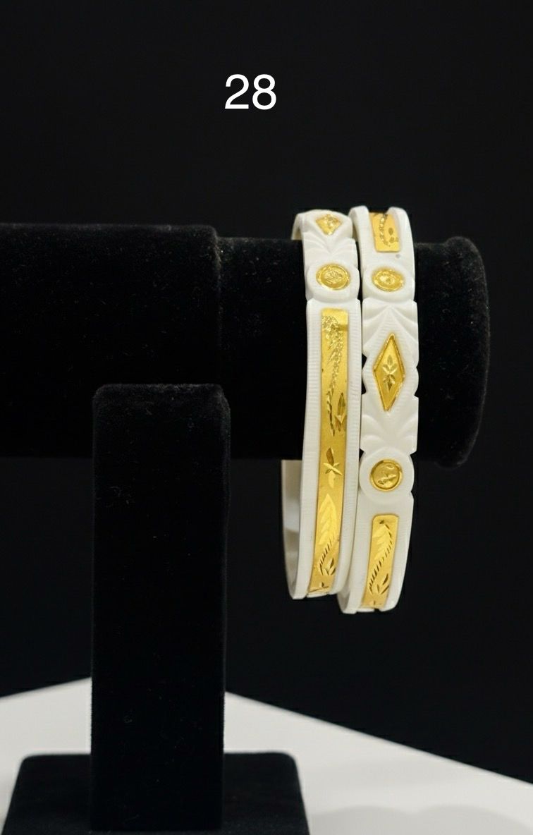 Grace your wrists with this charming Tip Design Sakha, crafted with star-shaped gold accents and a clean, modern finish. The striking 24K gold plating paired with the crisp white base creates a unique contrast that blends tradition with a touch of modern style.